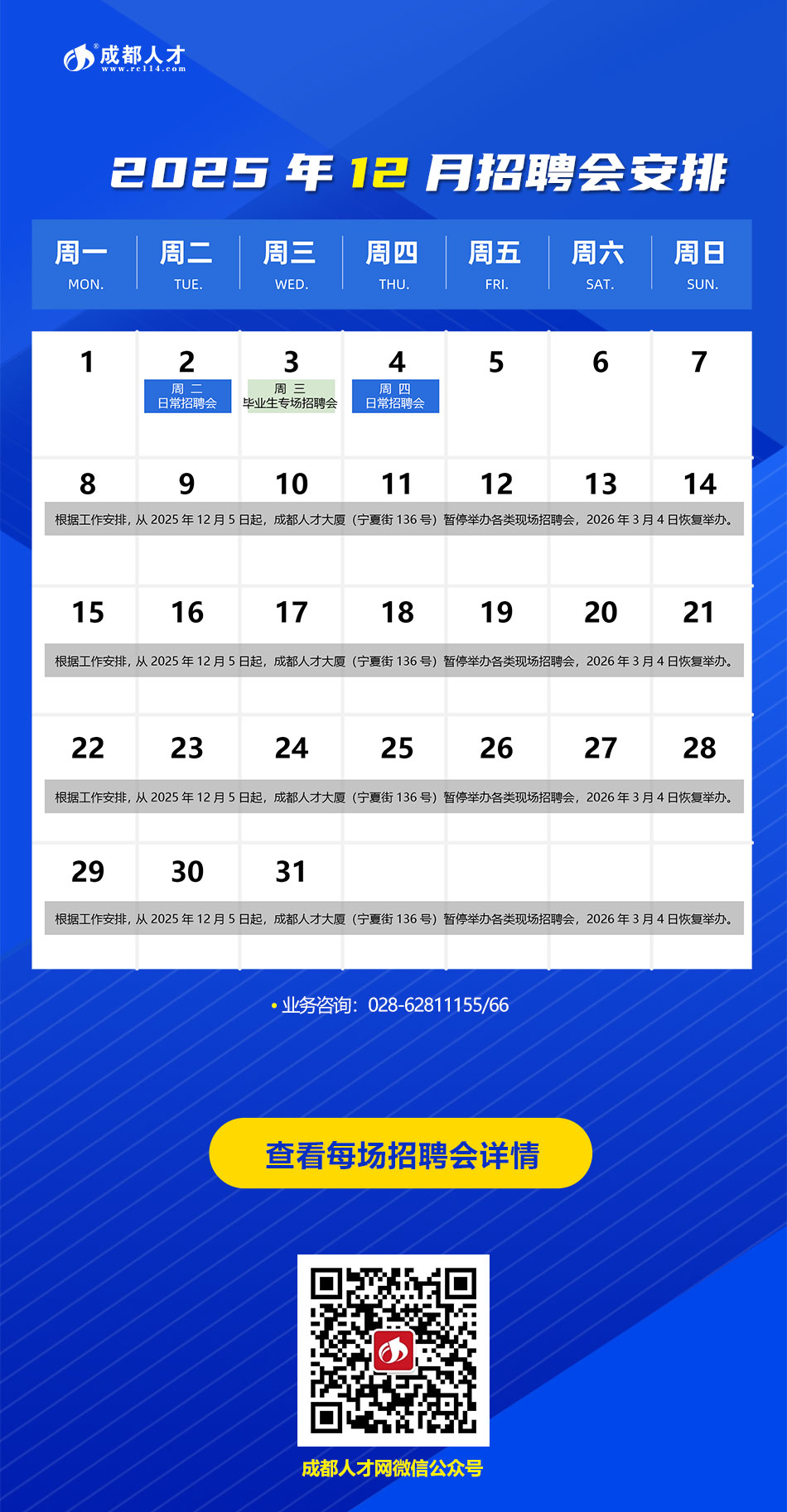 成都人才2025年12月招聘会安排