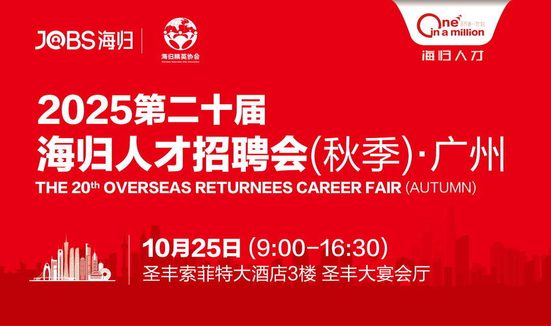 第二十届海归人才招聘会广州站将于10月25日在广州圣丰索菲特大酒店隆重举行。主要有迪卡侬、港中文(深圳)、神州数码、中国·贝赛思国际学校、广东碧桂园学校、国金证券、执信中学、广州菲利斯太阳能、深外湾区学校、万科梅沙书院等知名企业现场招聘。