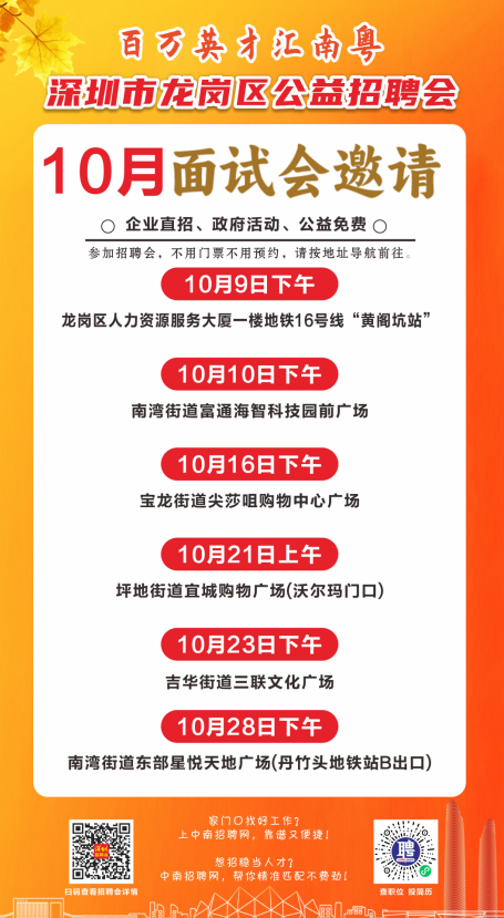 10月百万英才汇南粤深圳市龙岗区公益招聘会